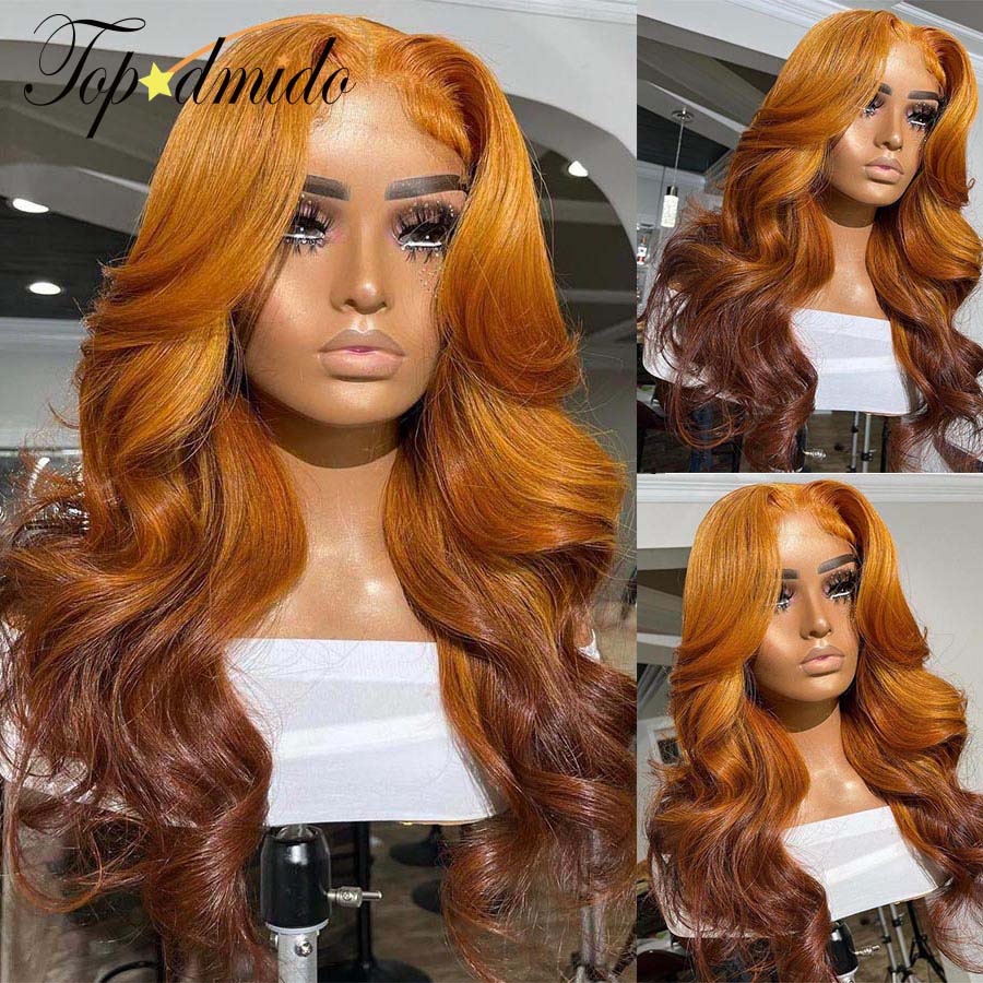 Ombre Ginger Brown Color Lace Front Wigs with Middle Part 4x4 Peruvian Remy Hair Closure Wigs Transparent Lace Wigs